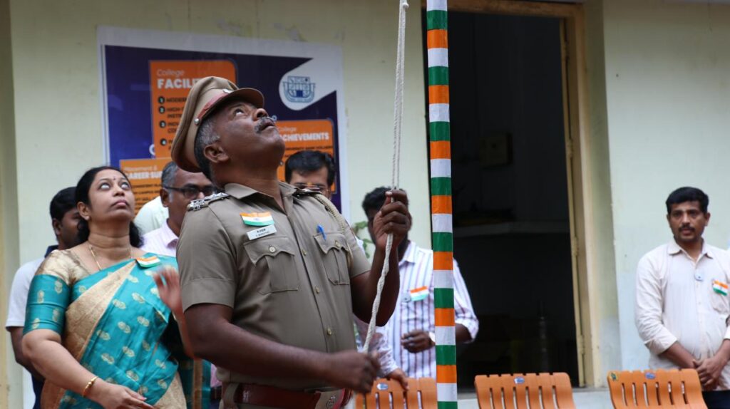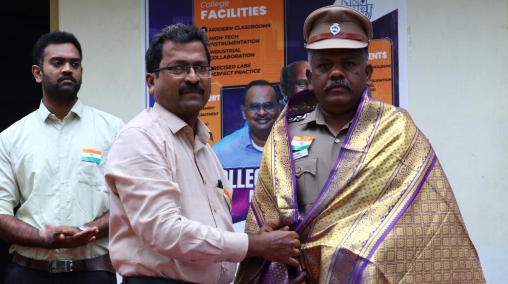The Programme Commenced with a Welcome Address by the Principal, Highlighted the Significance of Republic Day . The National Flag was Unfurled by the Chief Guest, Mr. Maruthu, Inspector of Police, Madurai Mattuthavani Police Station, he Delivered an Inspiring Speech on the Importance of the Republic and Valuable Advice to Students on Discipline and Responsibility.
